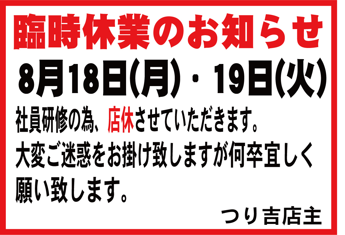 今後とも【釣具のつり吉】をどうぞよろしくお願い致します。